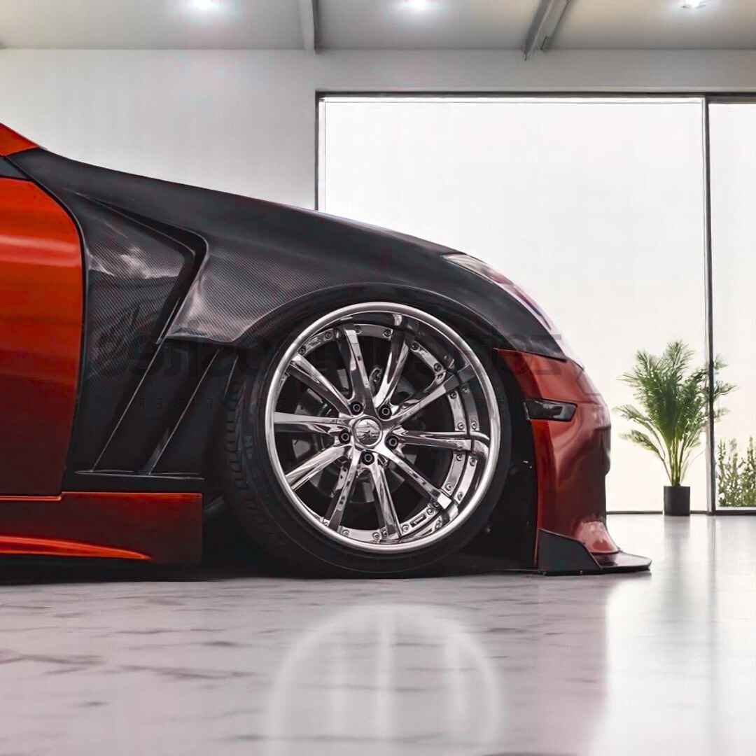 Flush fitting, lightweight and vented, real carbon fiber fenders for G35 coupe applications.