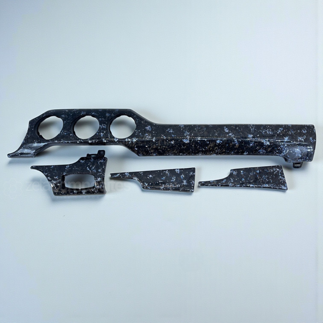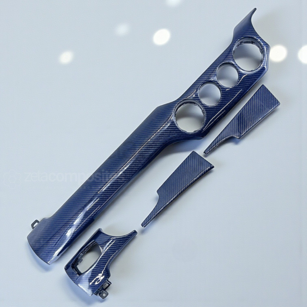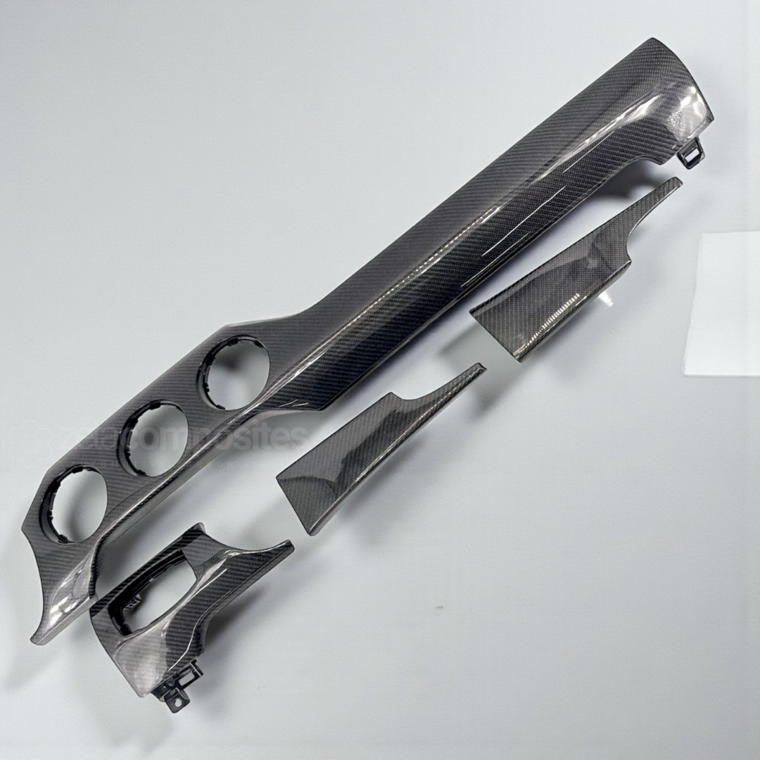 Direct replacement carbon fiber dash package for 2015-2023 S550 Mustangs. Requires dash disassembly for install.